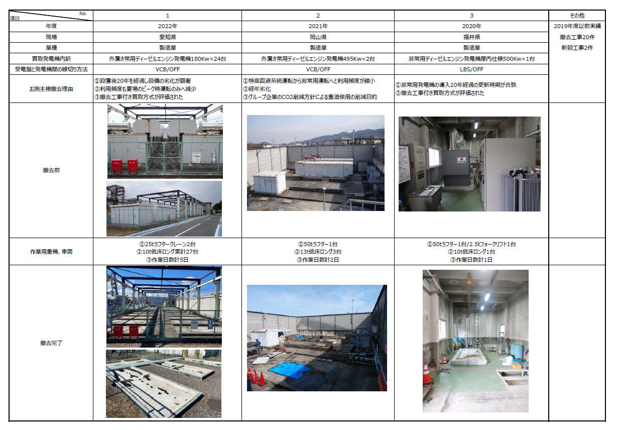 ディーゼルエンジン発電機撤去工事付き買取例